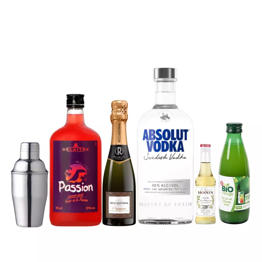 Imagine un cocktail qui te fait voyager en plein cœur des tropiques. On commence avec une liqueur de fruits de la passion, un parfait mélange d'acidité fruitée. On lui ajoute de la Vodka Absolut, et pour le côté gourmand, un sirop de vanille Monin.
